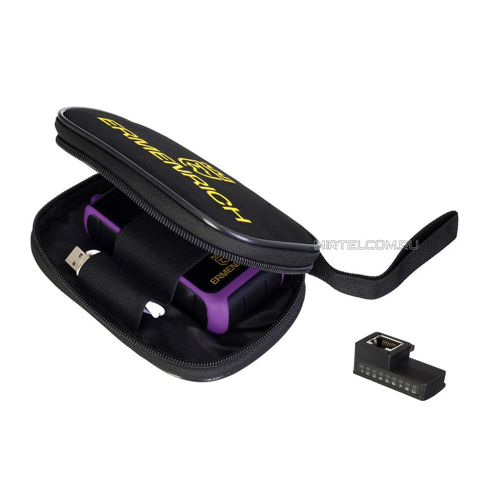 Встроенный тестер витой пары позволяет произвести проверку целостности, порядка медных жил (wiremap) и качество обжима коннектора RJ-45.